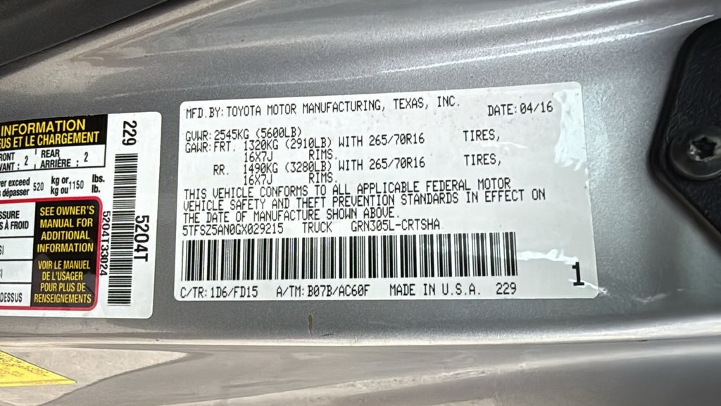 | VIN: | 5TFSZ5AN0GX029215 |